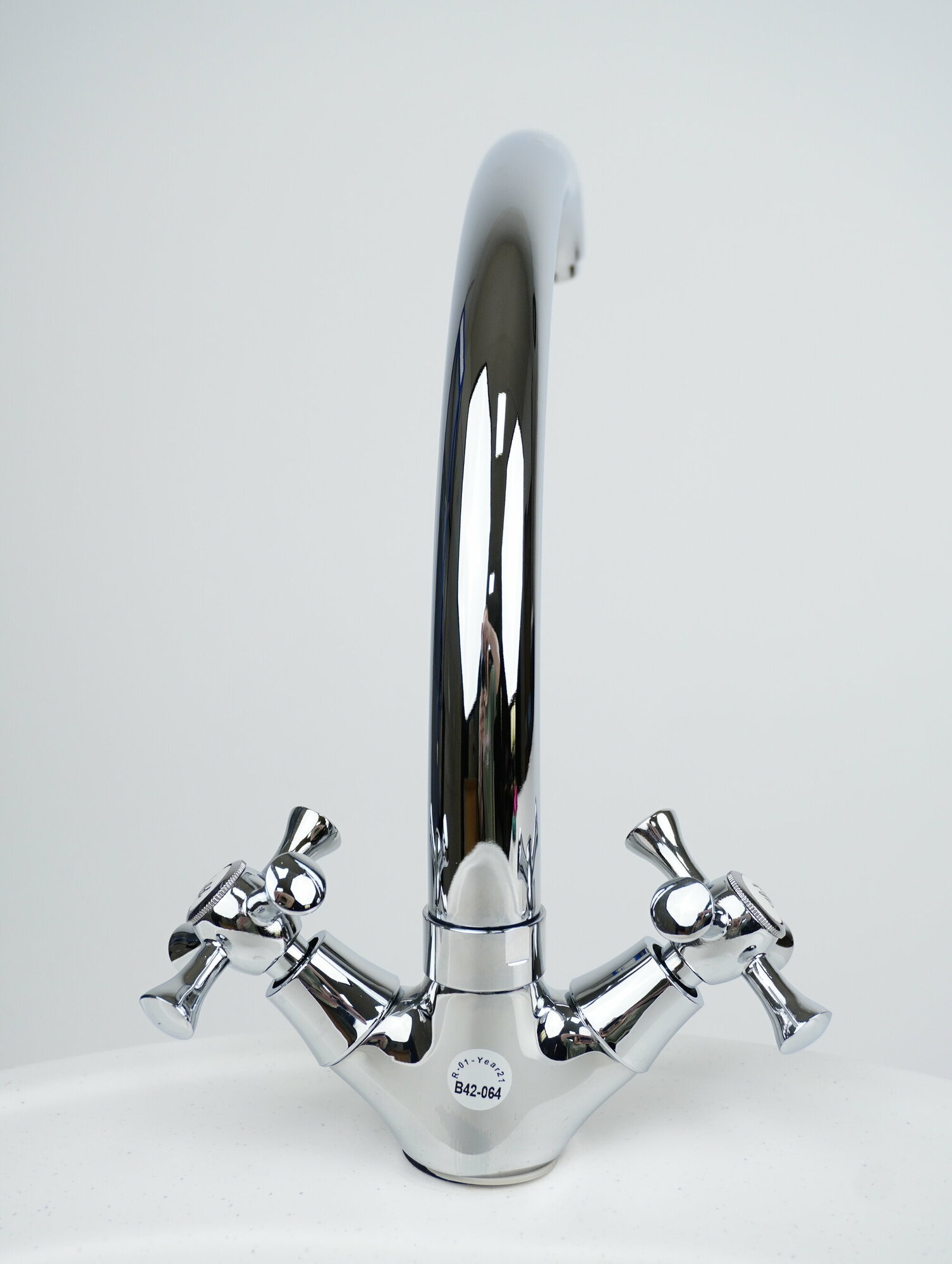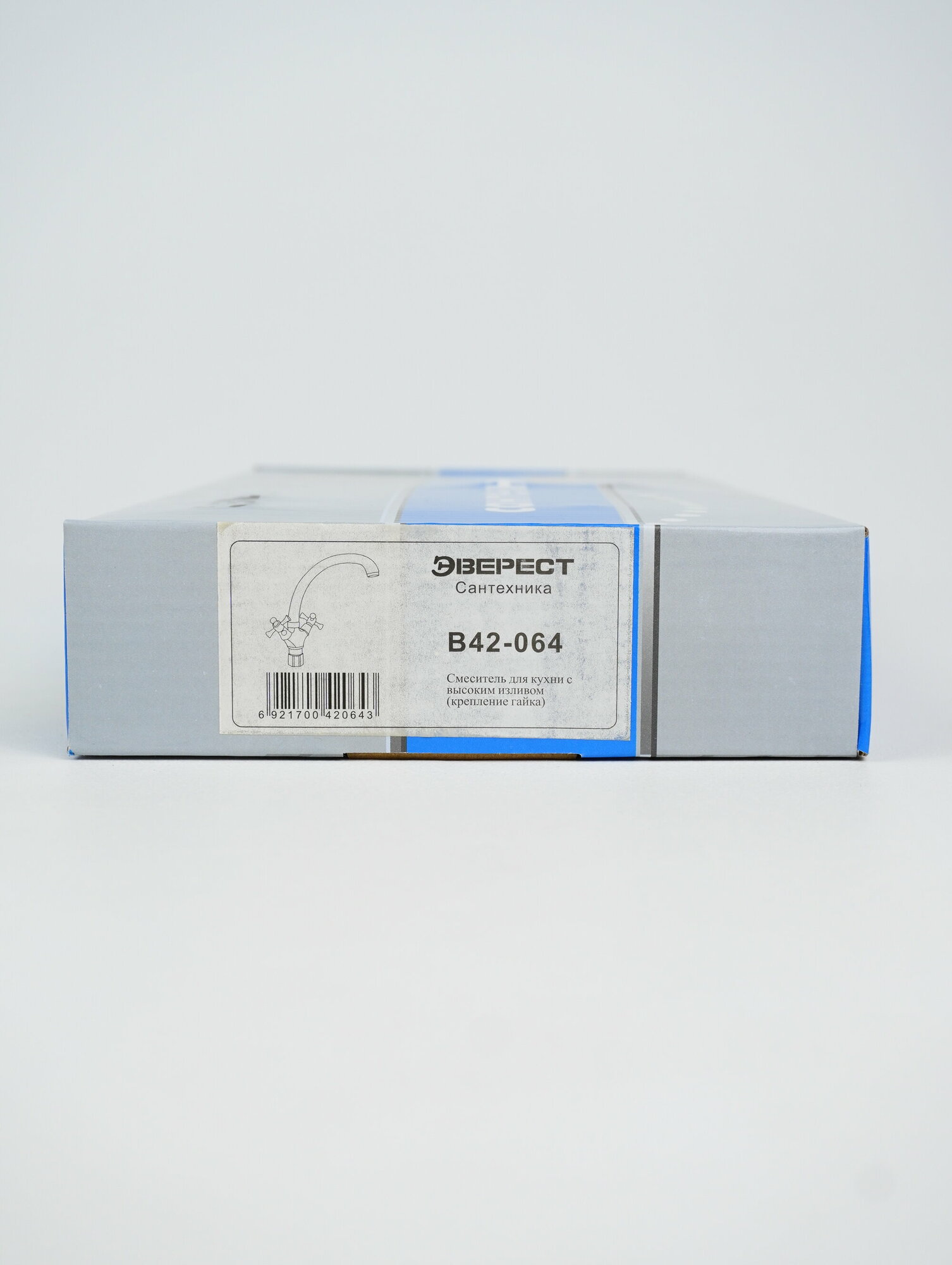 Смеситель для кухни Эверест B42-064 с высоким изливом, керамические кран-буксы, хром, крепление гайка интересное: