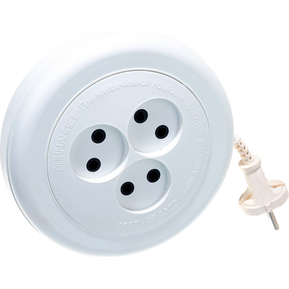 Сетевой удлинитель рулетка без заземления Perfeo RU POWER 5,0м, 3 розетки, белый