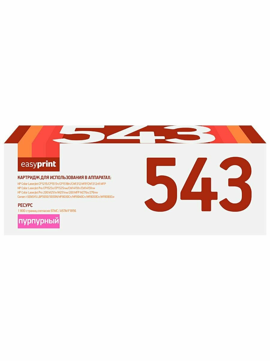 Картридж EasyPrint LH-543 U для HP CLJ CP1215/CP1515n/CP1525n/CM1415fn/Pro 200 M251/Pro 200 M276/Canon LBP5050/MF8030/8050/Cartridge 716M/731M (1800 стр.) пурпурный, с чипом
