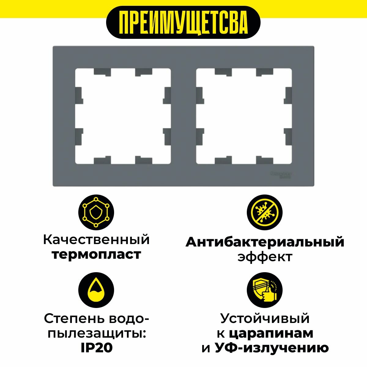 Рамка Systeme Electric Atlas Design двойная для розеток и выключателей грифель ATN000702 - 3 шт.