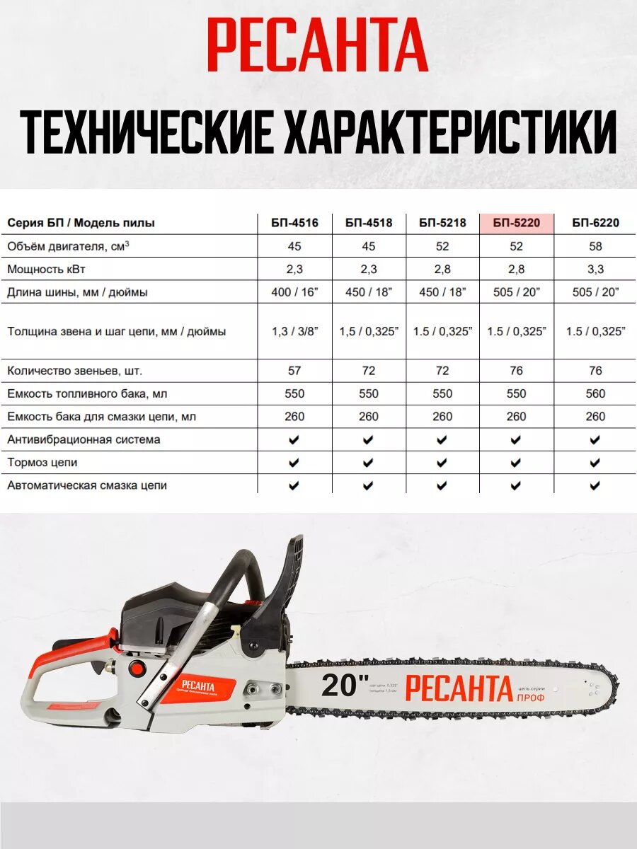 СохранитьЦепная бензиновая пила РЕСАНТА БП-5220 интересное:
