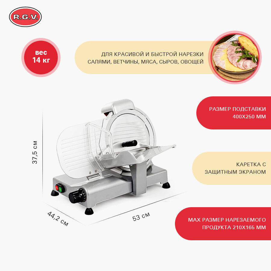 Слайсер RGV New LUSSO 25 GS, ломтерезка электрическая для нарезки мяса, колбасы, сыра интересное: