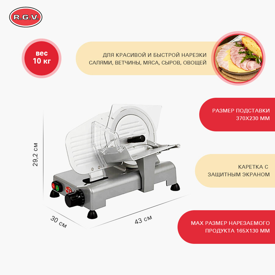 Слайсер RGV LUSSO 195GL Press ALL+AFF, ломтерезка электрическая для нарезки мяса, колбасы, сыра интересное: