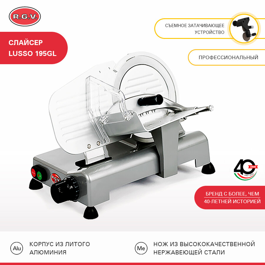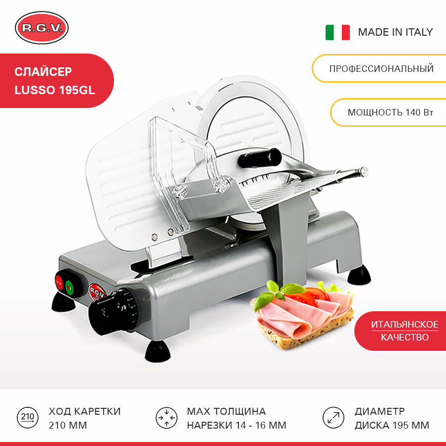 Купить Слайсер RGV LUSSO 195GL Press ALL+AFF, ломтерезка электрическая для нарезки мяса, колбасы, сыра