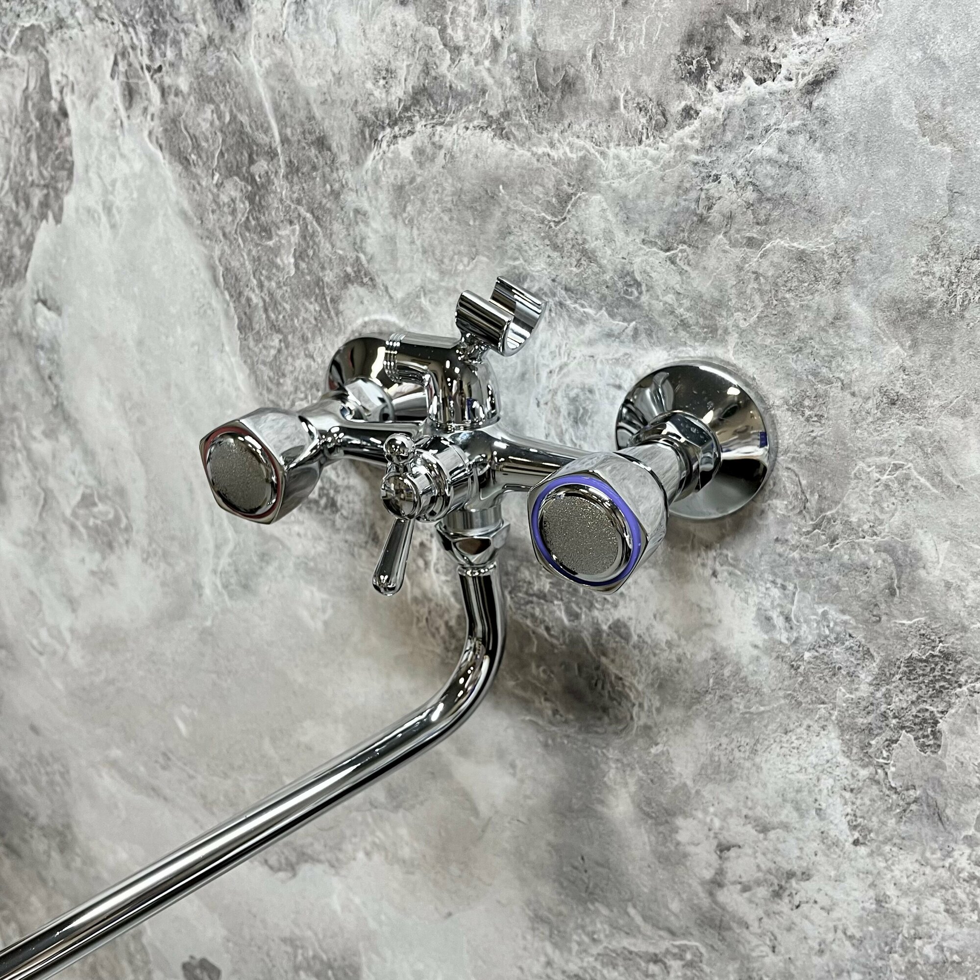 Смеситель для ванны Haiba HB2209 с длинным изливом и шаровым переключателем в корпусе, хром