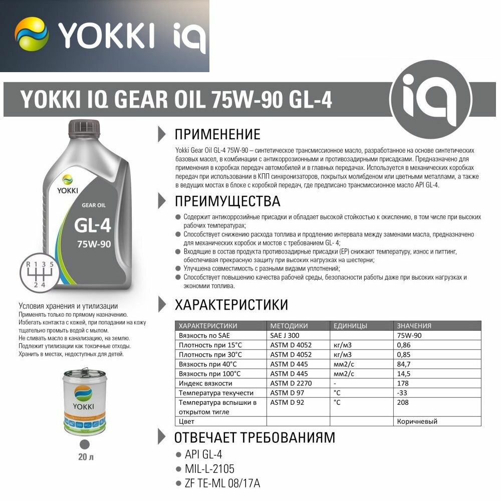 YOKKI YBA011001P масло трансмисионное 75W90 1Л GL-4 YOKKI IQ