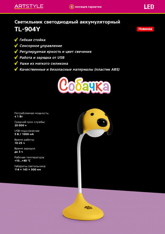 Светильник светодиодный аккумуляторный TL-904W, "Собачка"