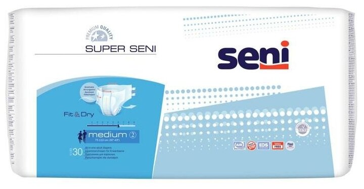 Подгузники Seni Super seni Fit & Dry для взрослых medium, 30шт