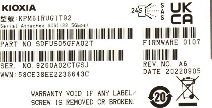 Накопитель SSD KIOXIA Enterprise 2.5" 1.92TB SAS 24Gbit/s TLC (KPM61RUG1T92)