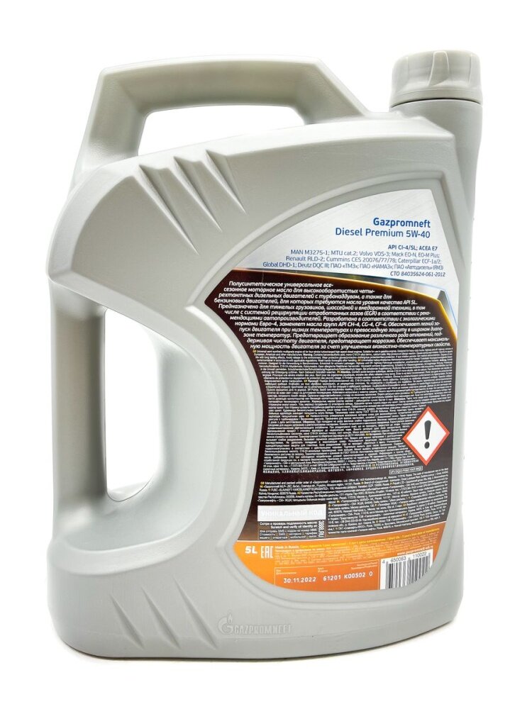 масло gazpromneft 5w40 diesel premium api cl-4/sl acea e7 5л п/с