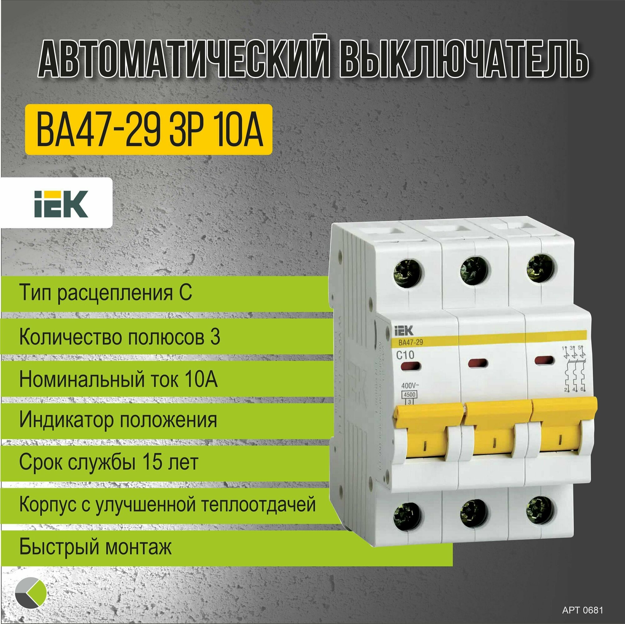 СохранитьАвтоматический выключатель ВА47-29 3Р 10А 4,5кА С IEK интересное: