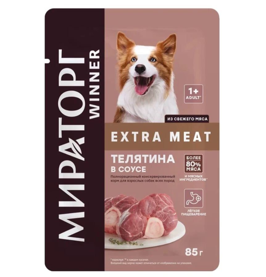 Мираторг Extra Meat 85 г пауч для взрослых собак всех пород телятина в соусе 24 шт