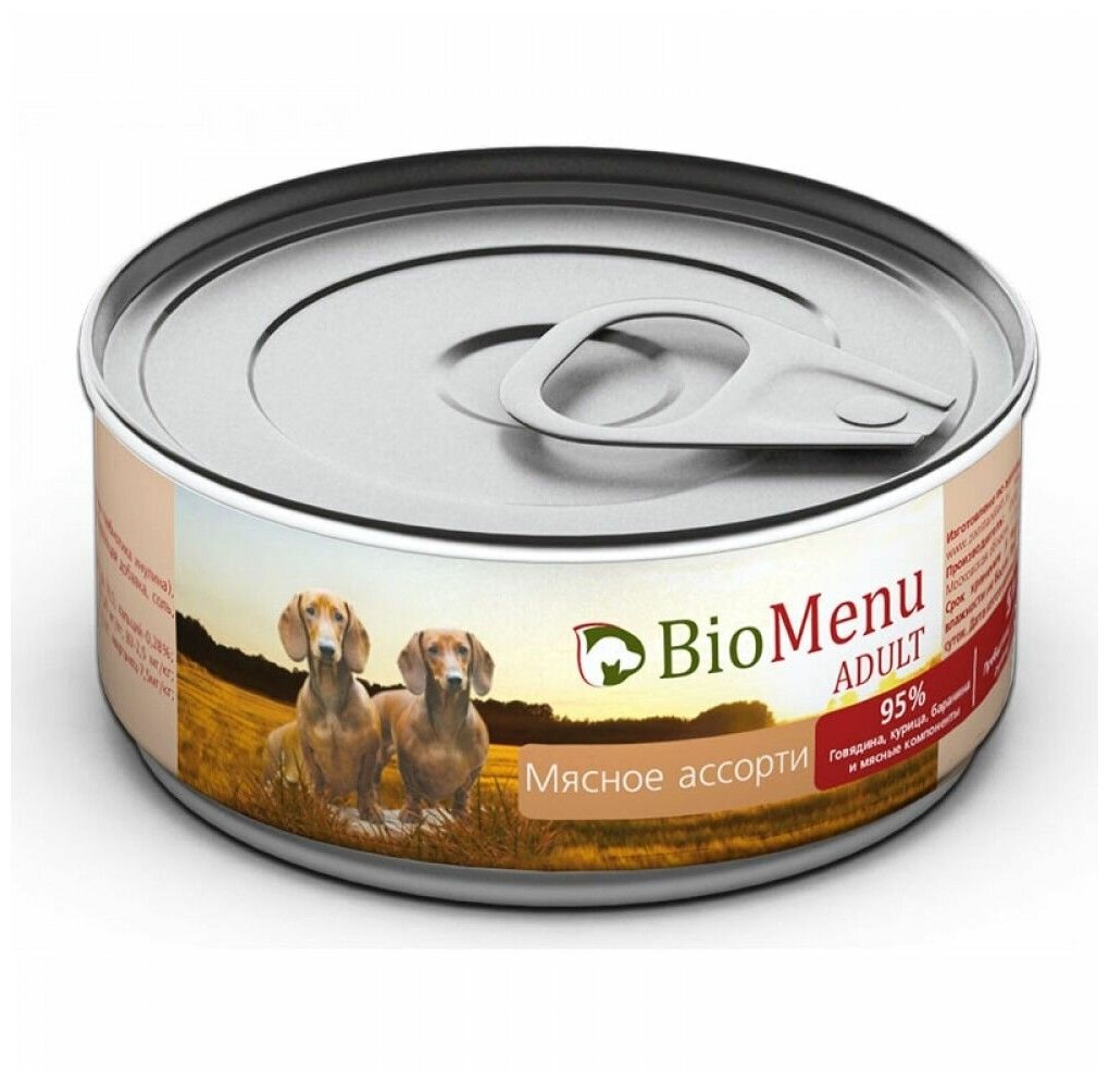 BioMenu ADULT Консервы для собак Мясное ассорти 95%-мясо 100г (24шт)