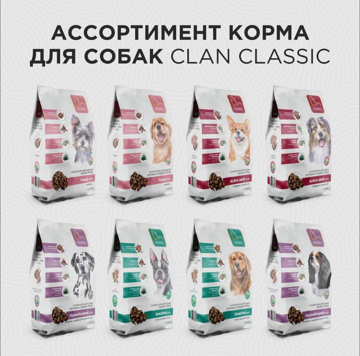 CLAN CLASSIC сухой корм для активных собак крупных и средних пород с Говядиной и Индейкой 1.25кг