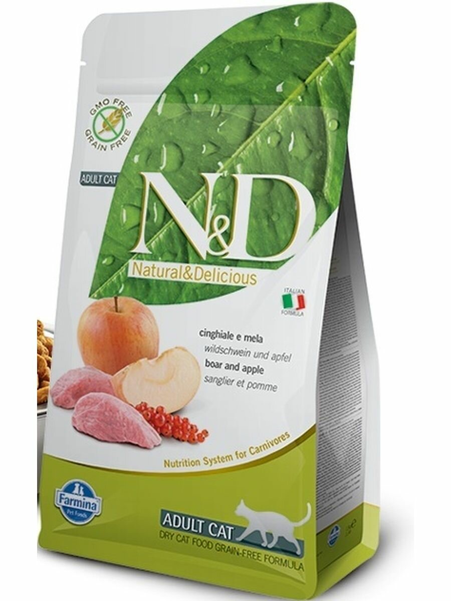 N&D CAT BOAR & APPLE ADULT/Н&Д КЭТ кабан С яблоком для взрослых кошек, 1,5 кг