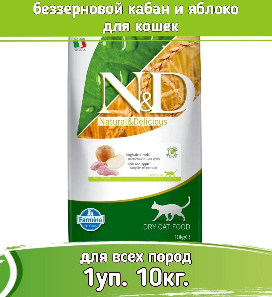 24954/1031 FARMINA N&D беззерновой корм д/кошек Мясо дикого кабана с Яблоком 10кг
