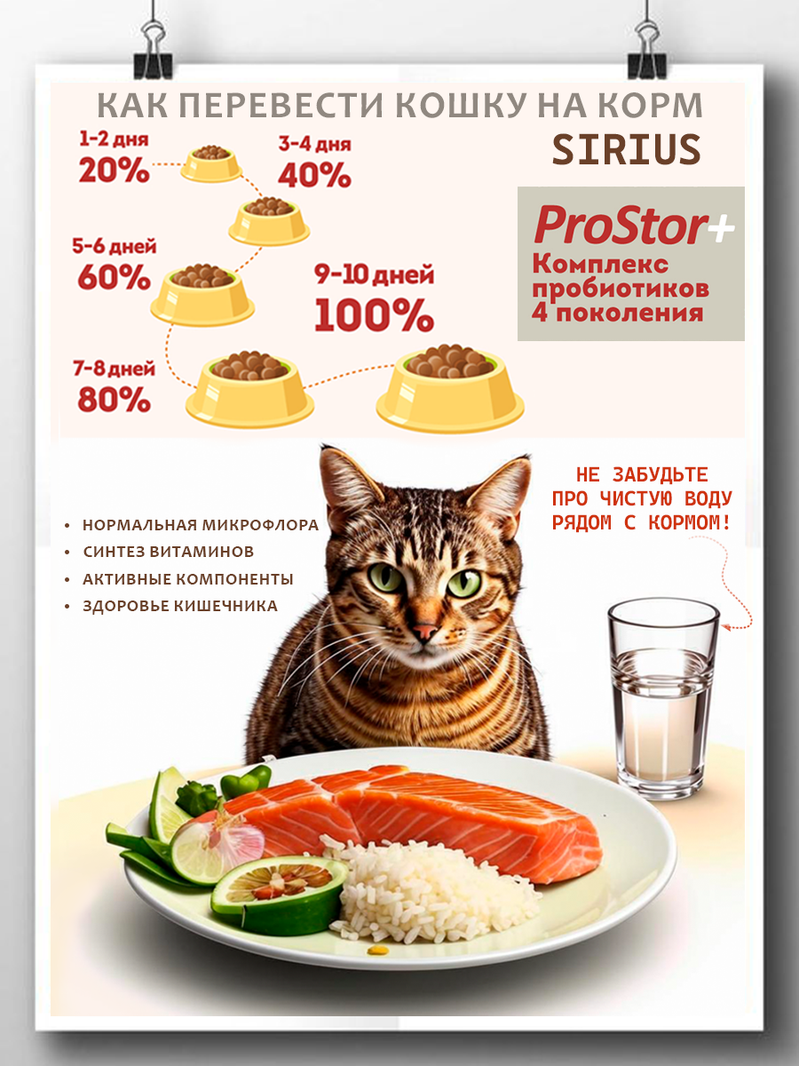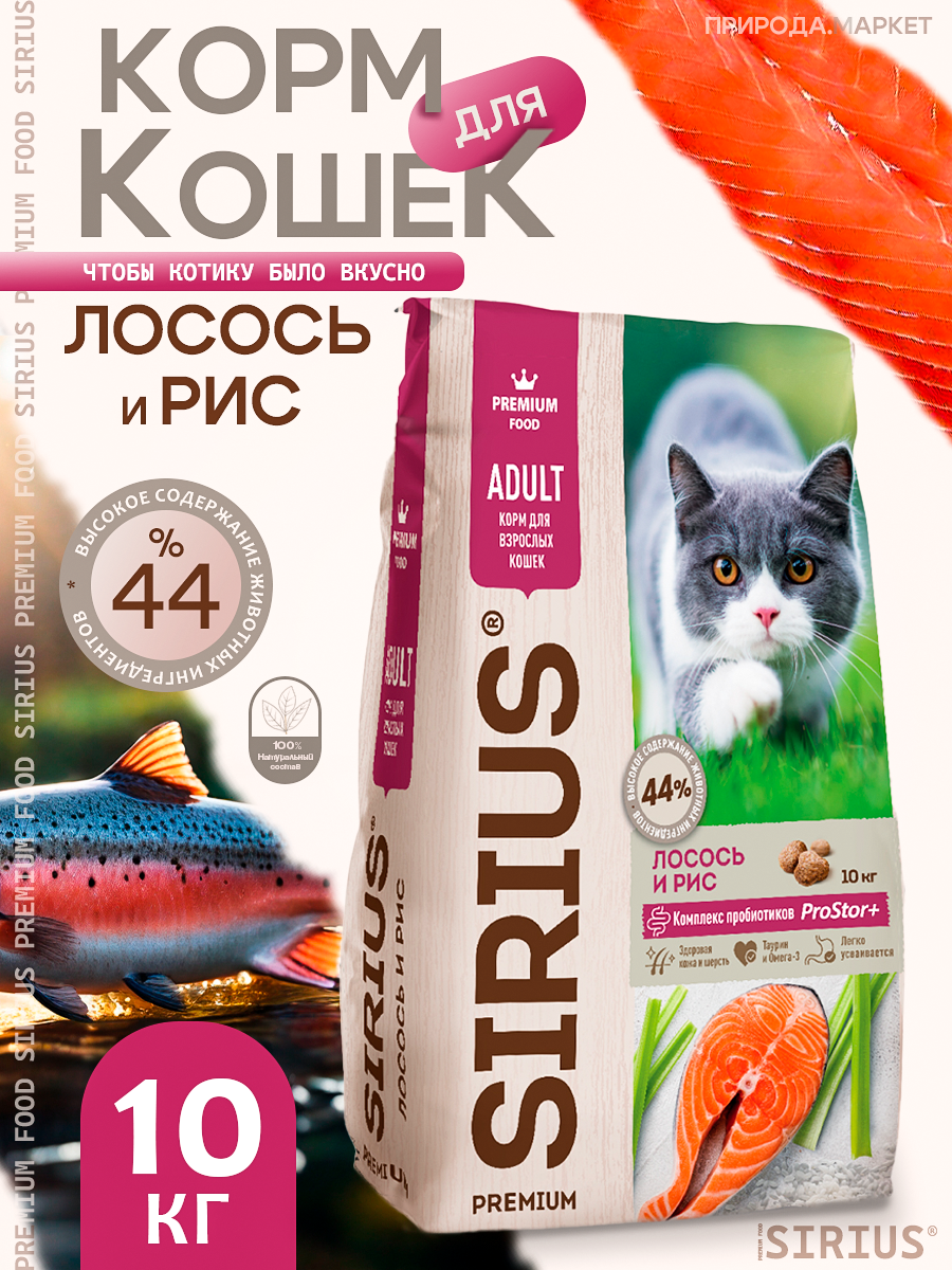 СохранитьСухой корм премиум класса SIRIUS для взрослых кошек, лосось и рис, 10 кг интересное: