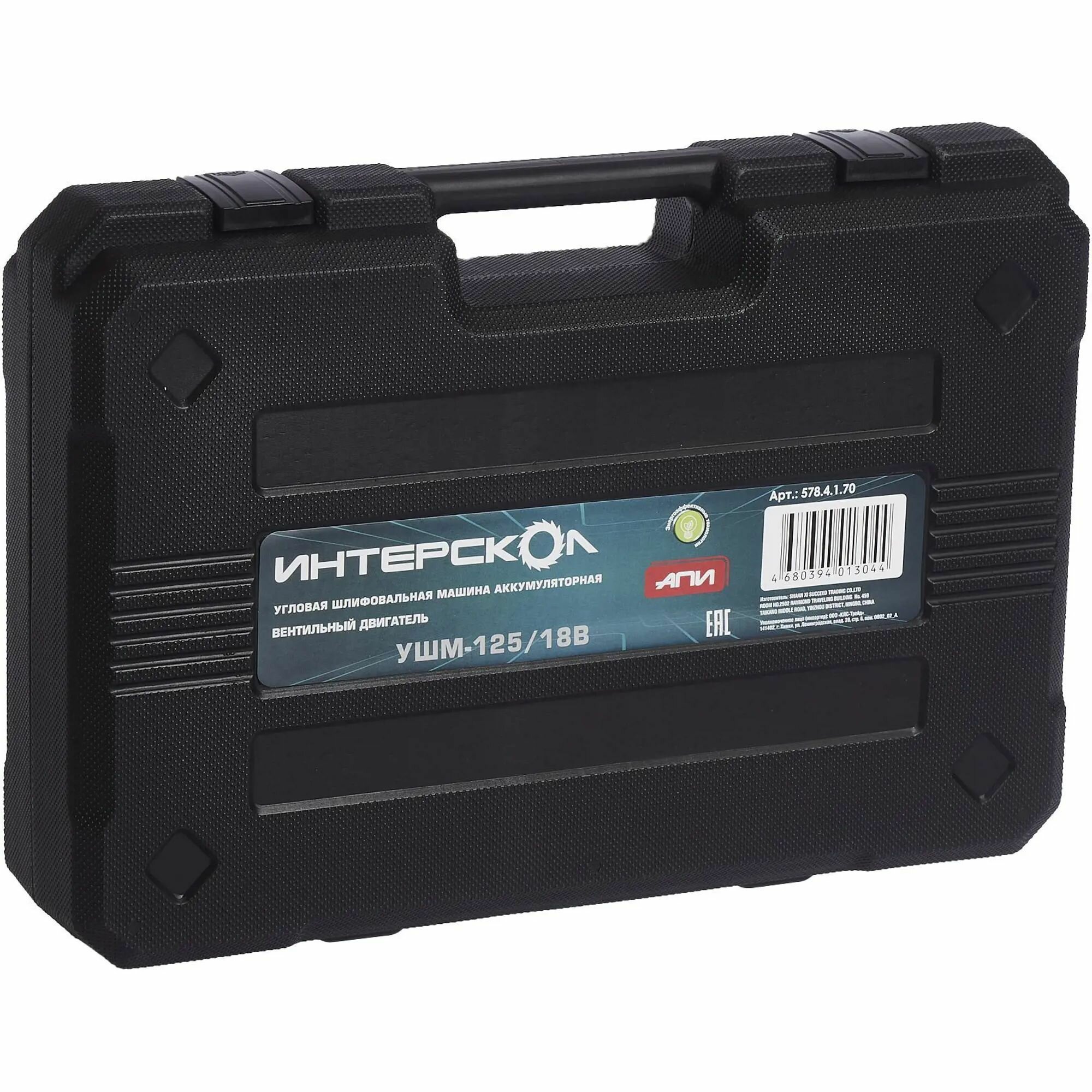 Угловая шлифмашина аккумуляторная Интерскол УШМ-125/18В АПИ (кейс, 1 аккумулятор, 4А/ч)