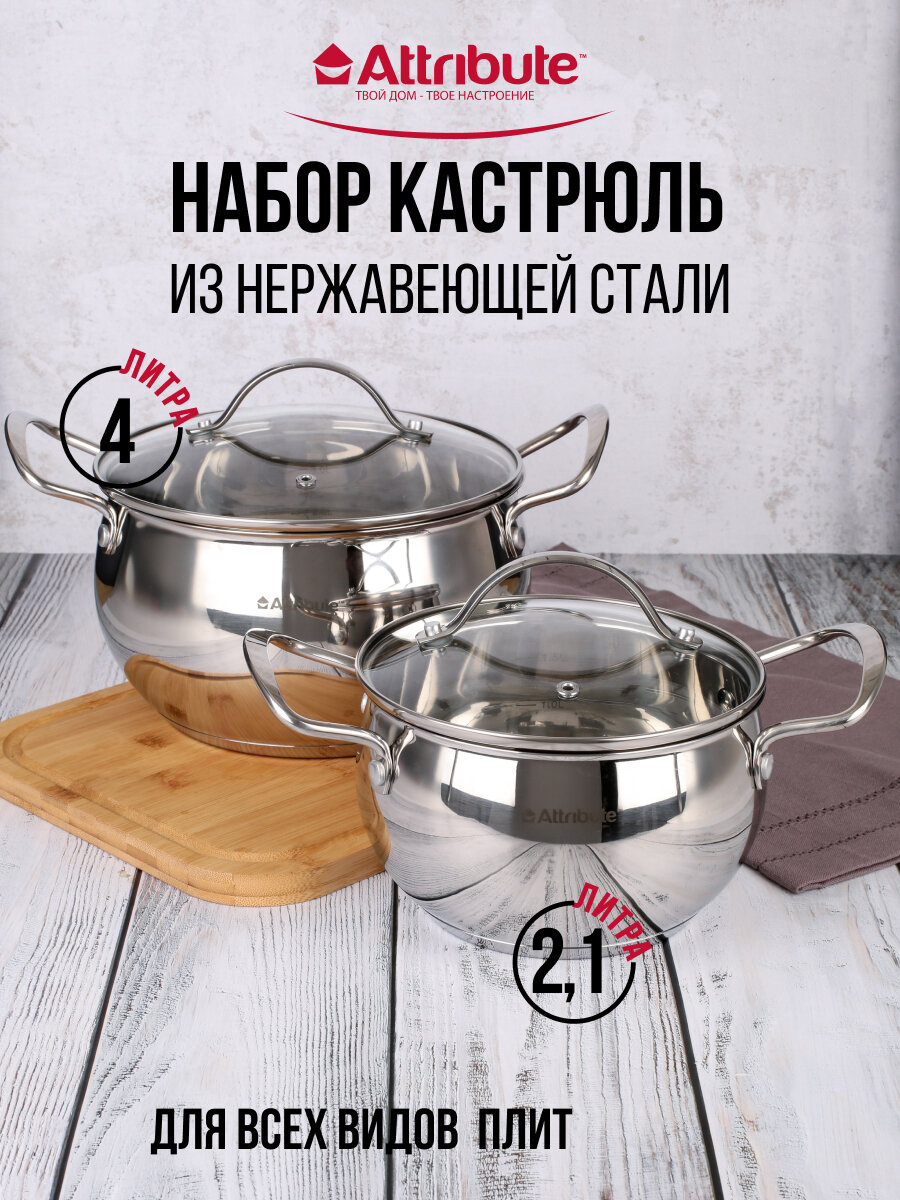| Комплектация | кастрюли с крышками 2,4 л, 4,4 л |