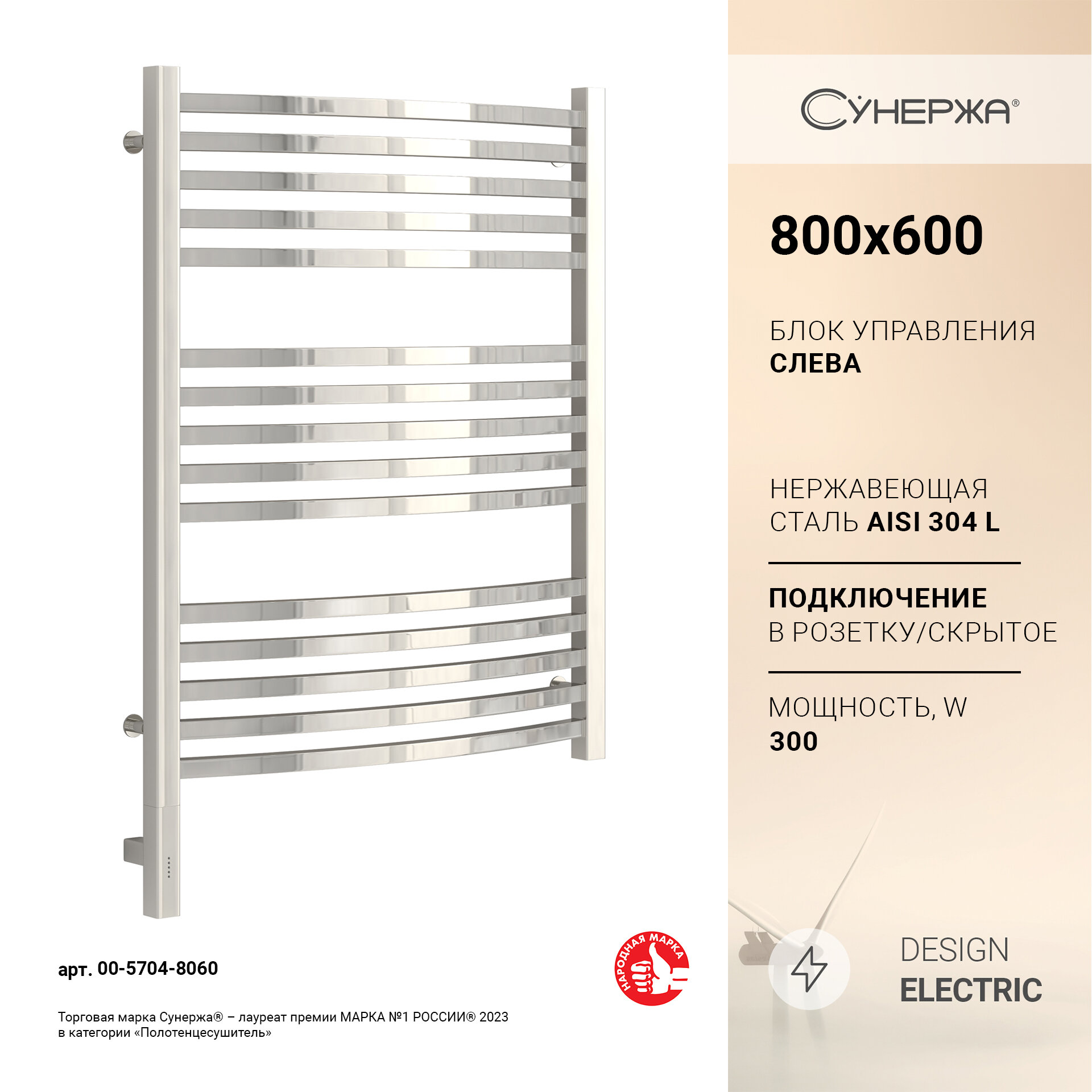 Полотенцесушитель электрический Сунержа Аркус 3.0, 800x600, МЭМ левый, сталь полированная 00-5704-8060