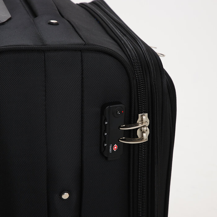 Чемодан средний 24"на молнии с расширением, кодовый замок, цвет чёрный