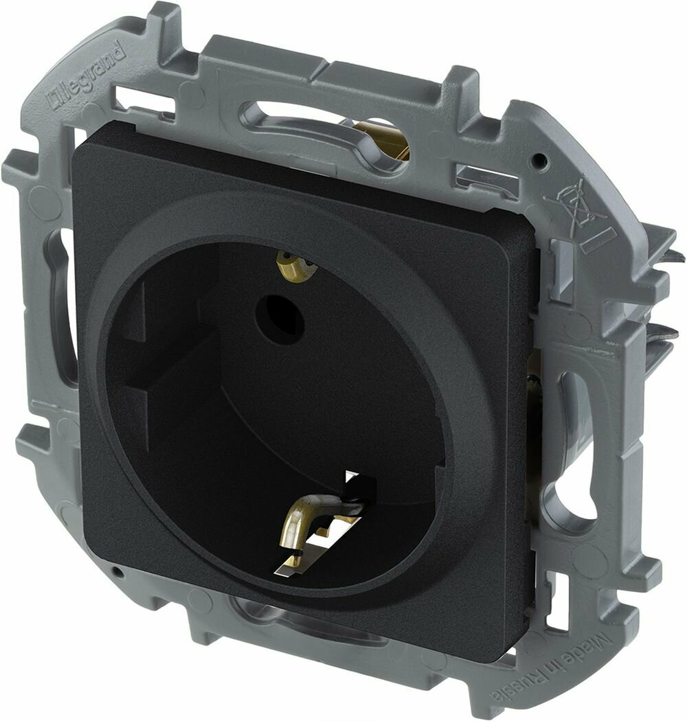Розетка с заземлением Legrand Inspiria для скрытого монтажа , цвет "Антрацит", ток 16 А, напряжение ~250В, максимальная мощность 3680 Вт.