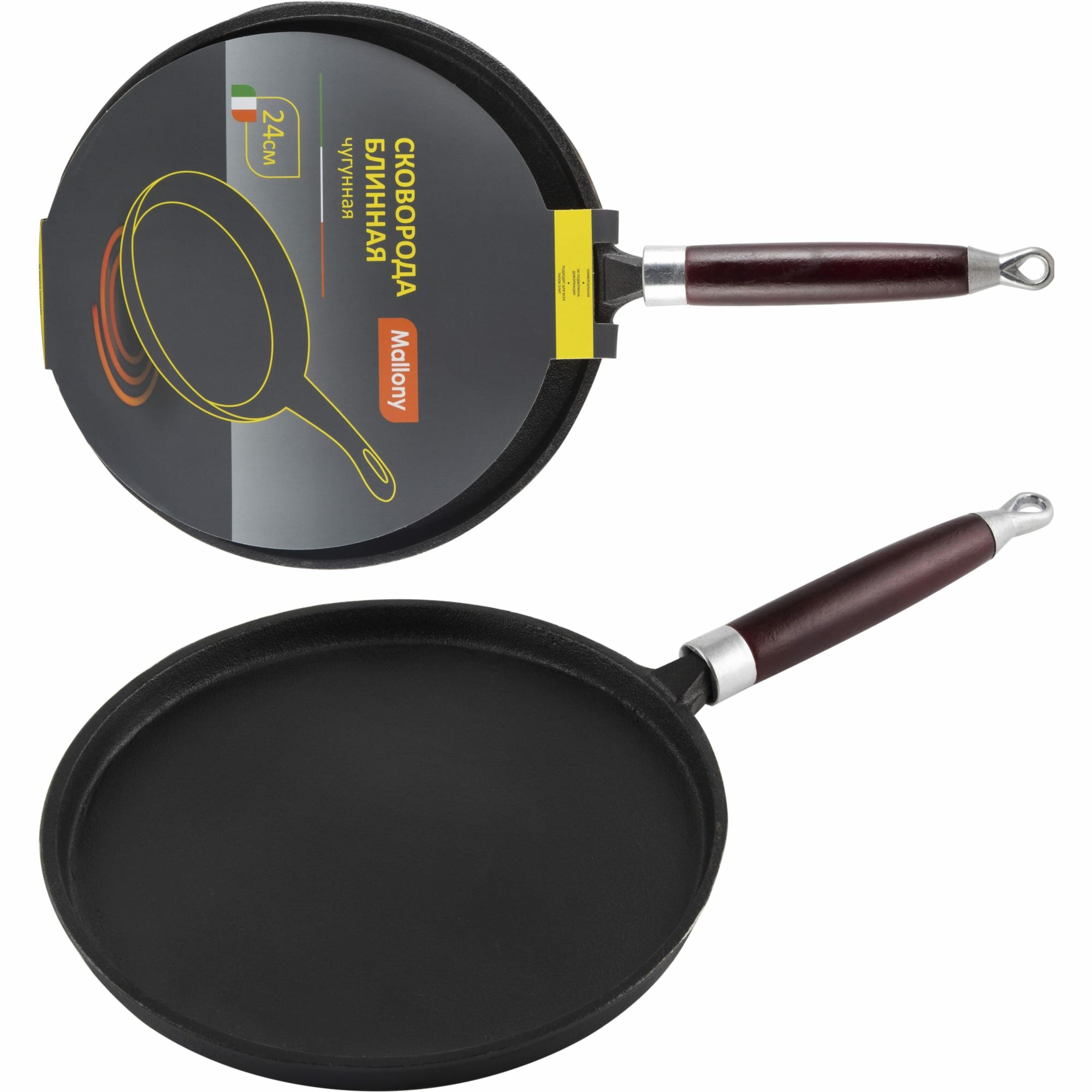 Купить Mallony Сковорода блинная чугунная Pcif-24, диам 24 см, в конверте, промасл. Покрытие (985029)
