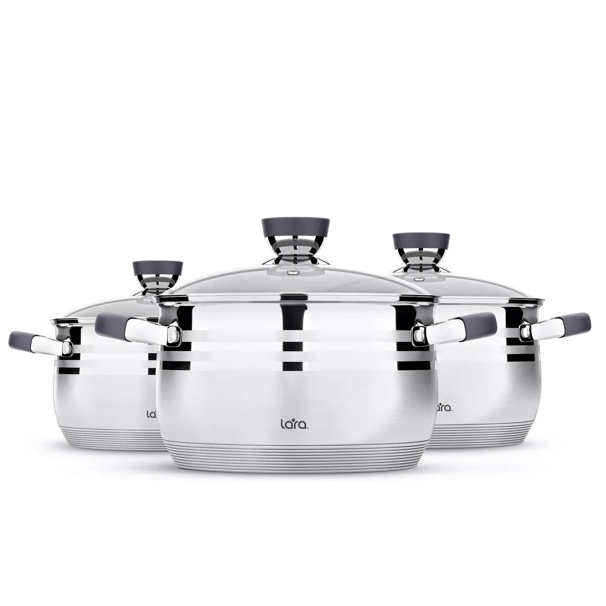 Купить Набор Посуды Lara Lr02-121 Серия Mercury 3 Пр. (2.1+2,9+4,9Л) Индукц.дно,Полировка LARA арт. LR02121