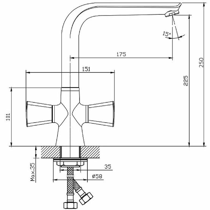 | Комплектация | Смеситель, универсальная присоединительная группа (шпилька-2шт), гибкая подводка с латунными гайками 35см - 2шт, фум-лента, индивидуальный пакет, паспорт, гарантийный талон |