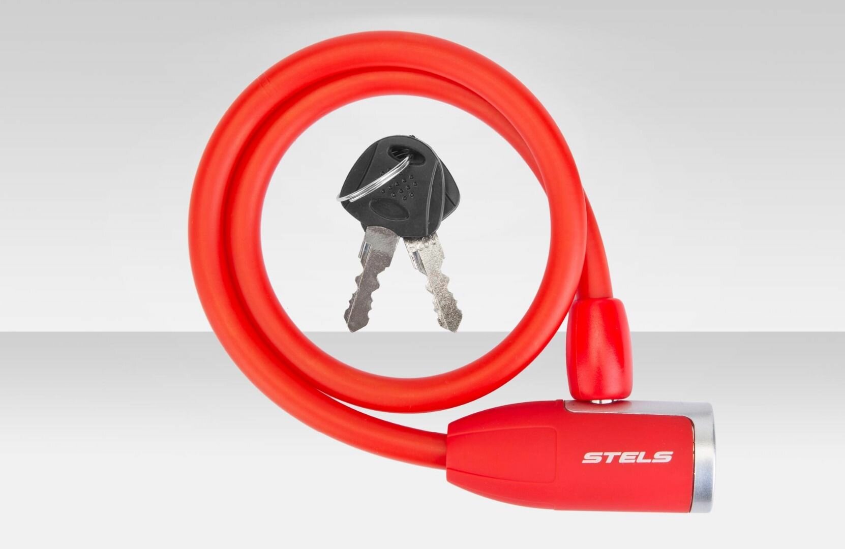 Купить Замок велосипедный STELS 84356, 10x650 мм, стальной, на ключ, красный, арт. 540052