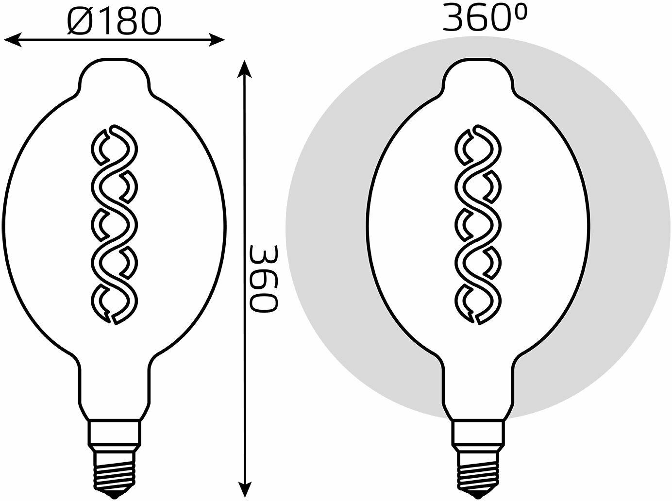Лампа Gauss Filament BT180 8W 620lm 2400К Е27 golden flexible LED 1/6