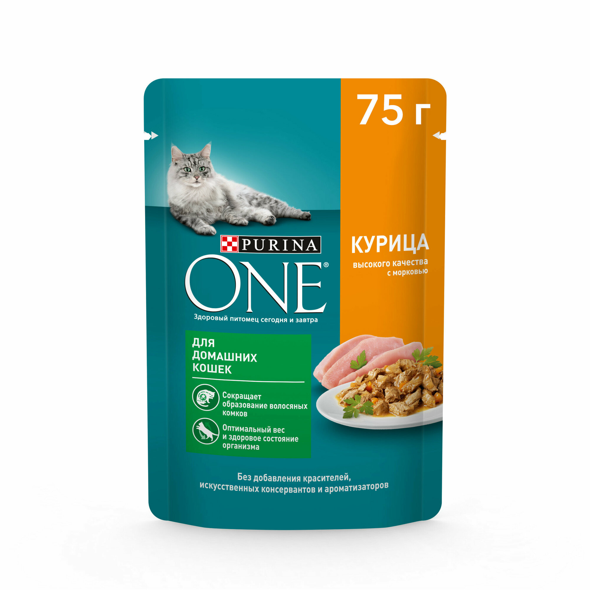 Влажный корм Purinа One для домашних кошек, курица/морковь, 75г