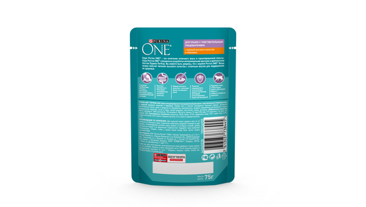 Корм влажный для взрослых кошек PURINA ONE Sensitive с курицей и морковью в соусе, 75г