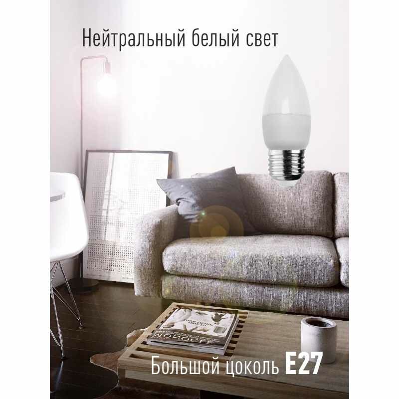 10 шт. Светодиодная лампочка Космос свеча E27 6,5W (480lm) 4500K матовая 99x37 LkecLED6.5wCNE2745 Цоколь E27