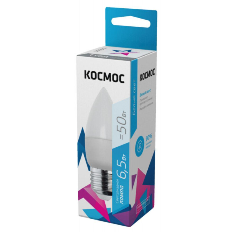 Лампочки светодиодные Космос Свечка 6,5Вт Е27 (аналог 50Вт) Нейтральный белый свет, 1 шт.