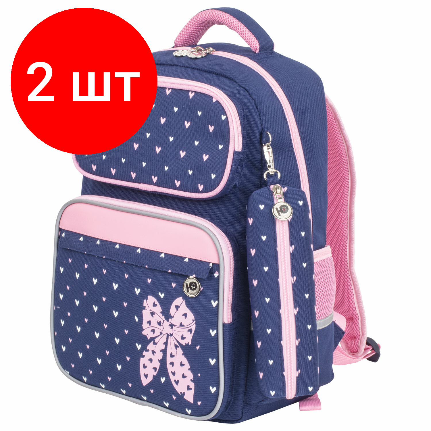 Купить Комплект 2 шт, Рюкзак юнландия COMPLETE, с пеналом в комплекте, эрго-спинка, "Pink bow", 42х29х14 см, 229972