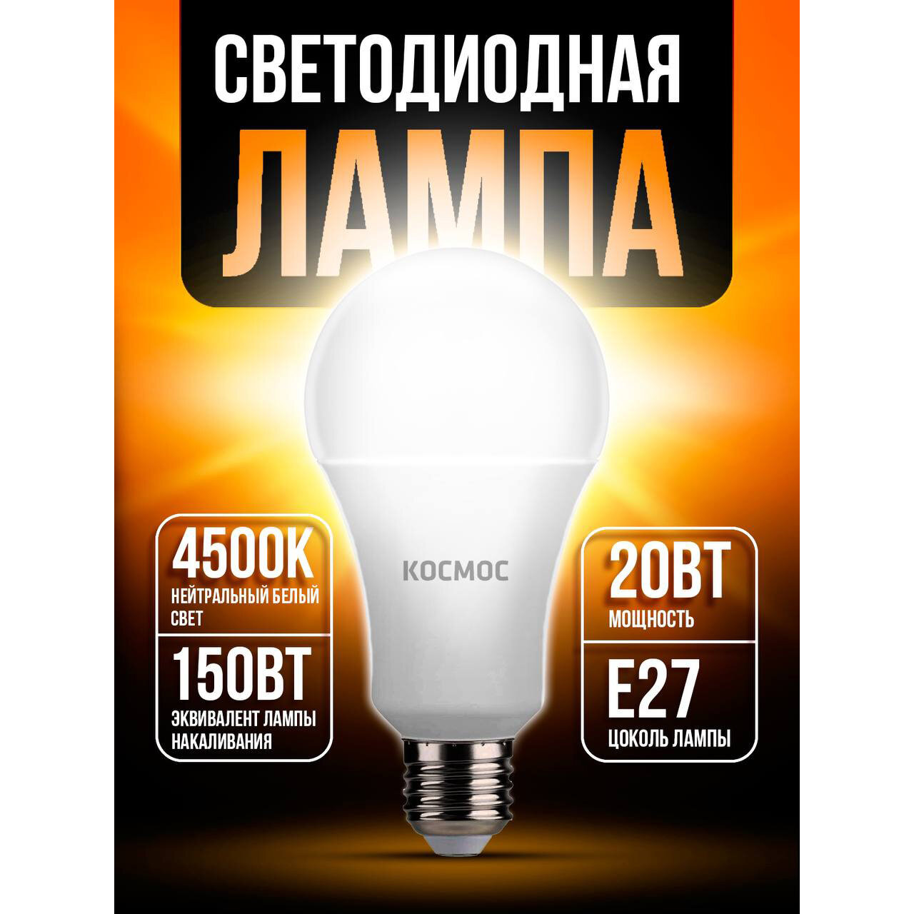 Светодиодная лампа Космос, 20 Вт, Е27, 4500 K, груша, LED20wA60E2745, нейтральный белый