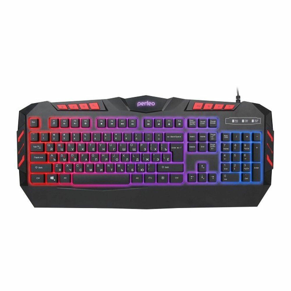 Клавиатура GAME DESIGN Perfeo "LEGION" Multimedia, с подсветкой 3 цвета USB, чёрная (PF_5140)