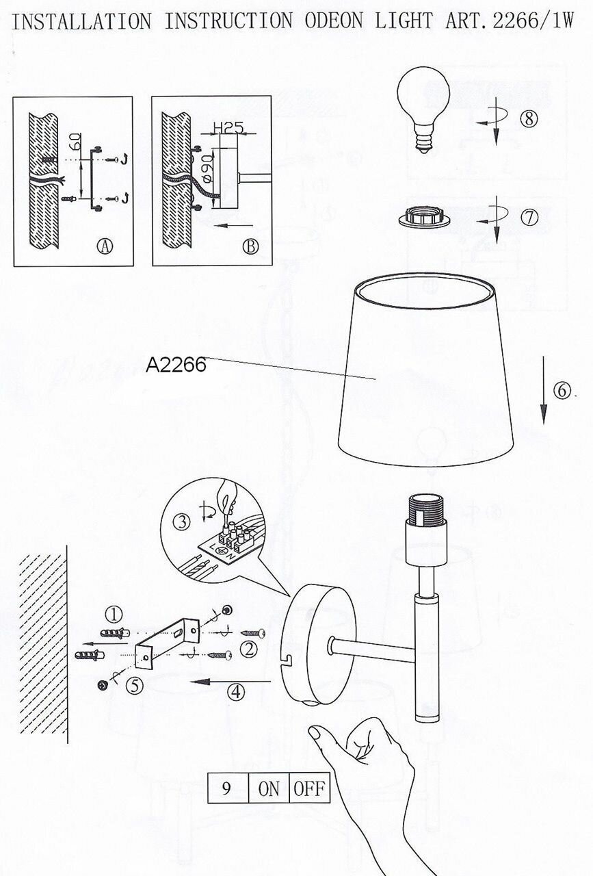 ODEON LIGHT Бра с выключателем текстиль E14 40W GLEN 2266/1W интересное: