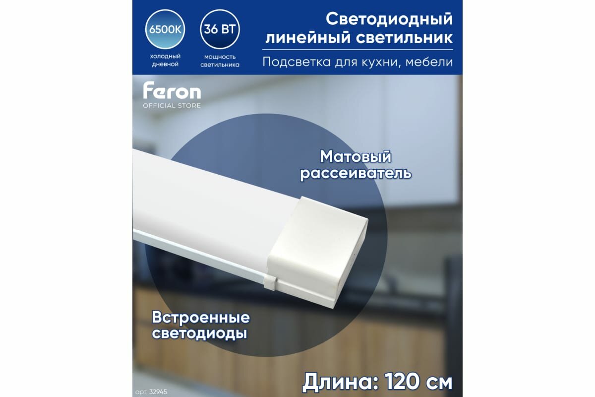 Светильник светодиодный линейный Feron AL5020 IP20 36W 6500K 1200*23*60мм матовый FERON 32945 (1 шт.)