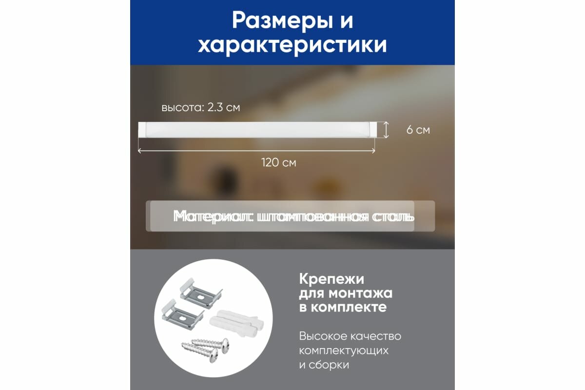 Светильник линейный светодиодный ДПО белый 36Вт 3000Лм холодный белый свет 6500К AL5020, 32945