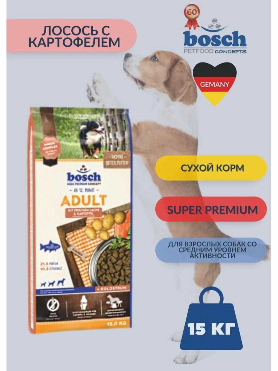 Сухой корм Bosch Adult для собак всех пород с лососем и картофелем 15 кг