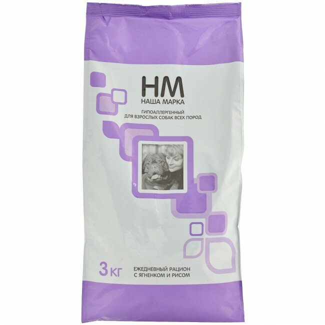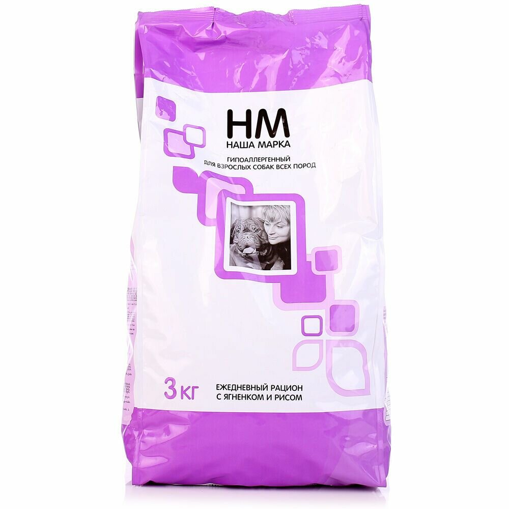 Корм сухой наша марка гипоаллергенный для взрослых собак всех пород с мясом ягненка и рисом, 3 кг