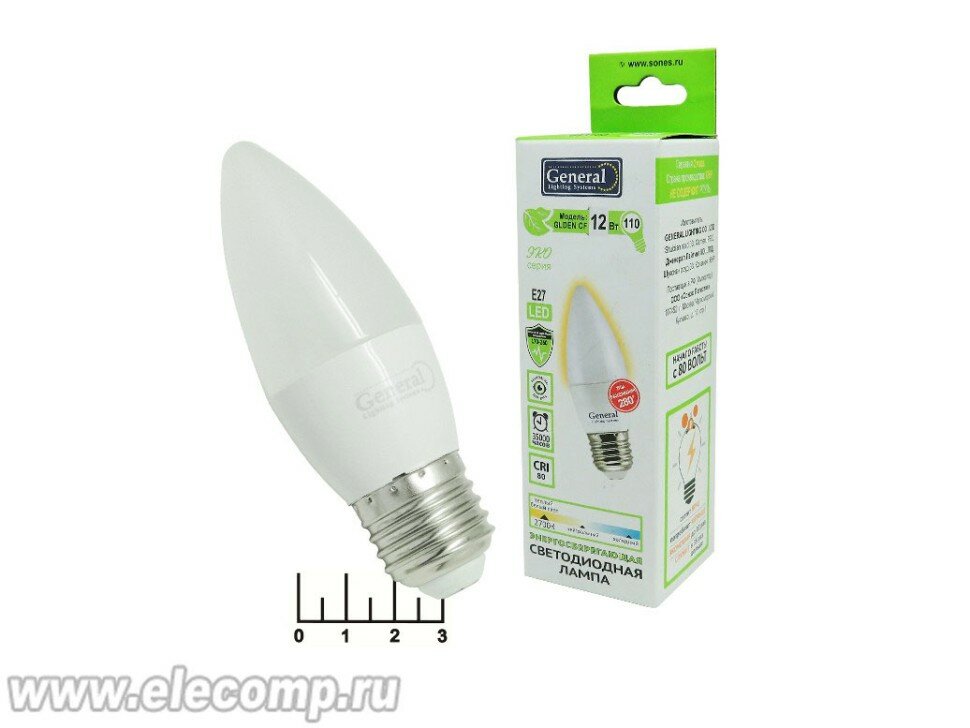 Лампа светодиодная 220V 12W E27 2700K белый теплый свеча матовая General (661092)