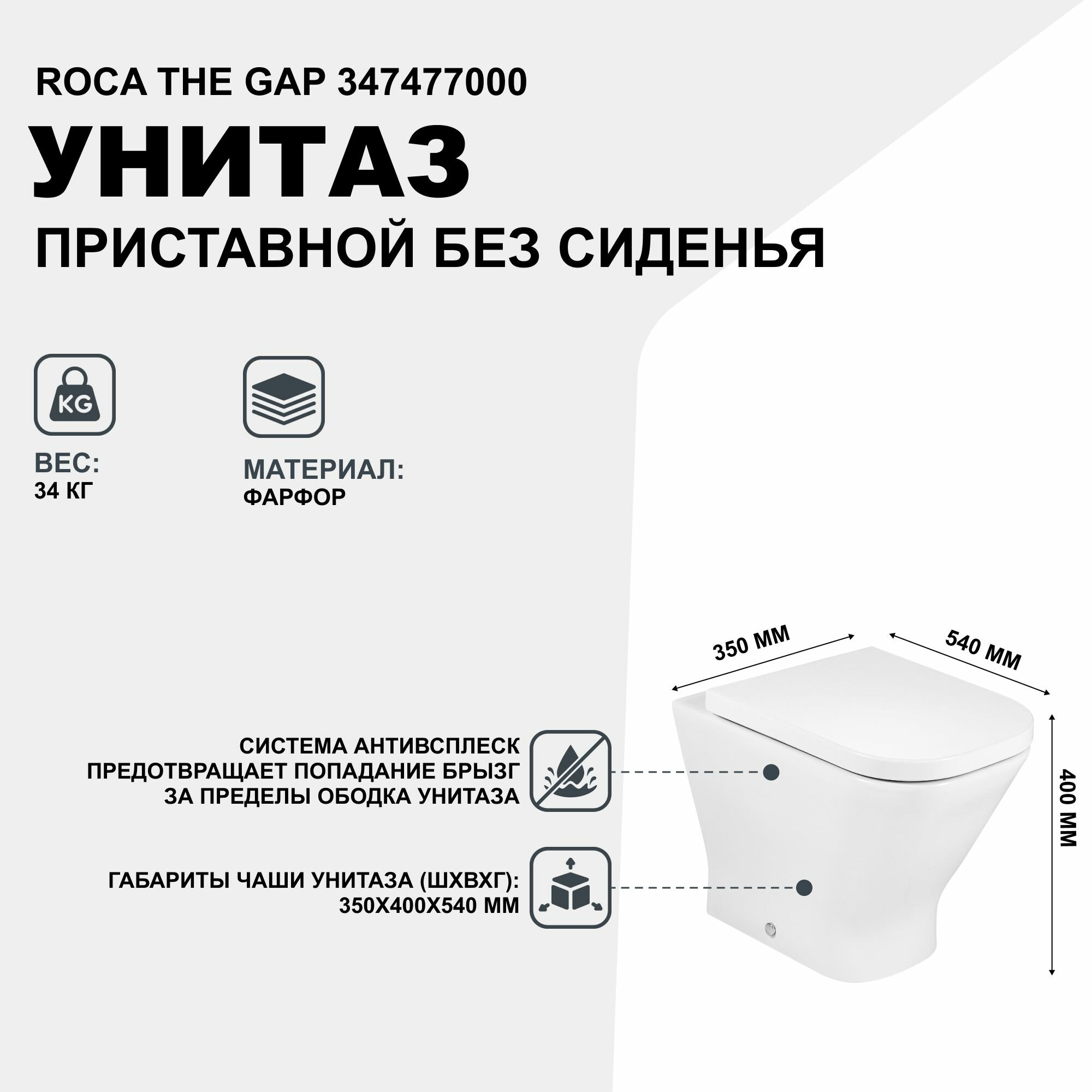 Приставной унитаз Roca Gap 35х54см, арт. 347477000, без сиденья