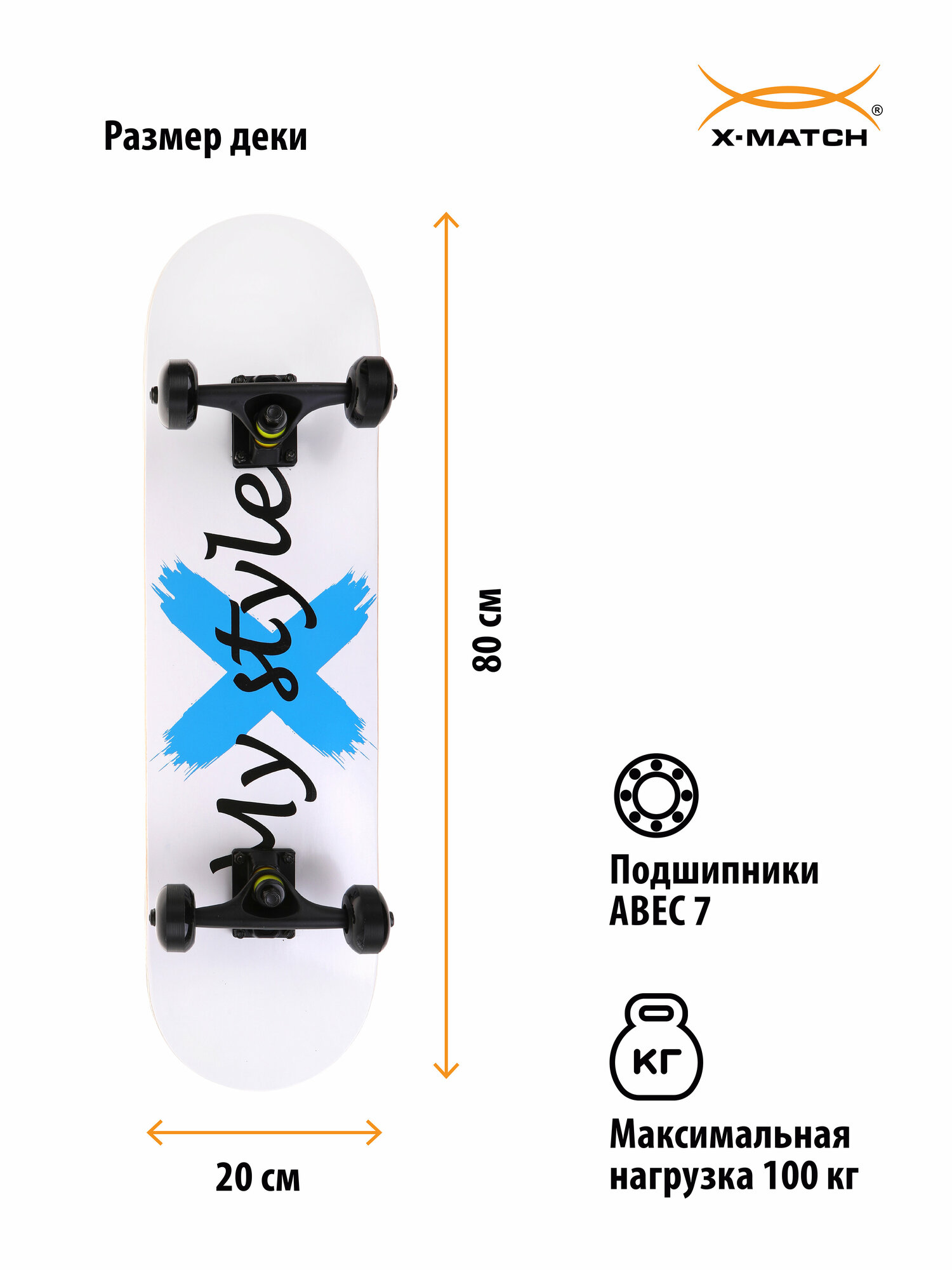 Скейтборд Х-Match, дека клён с наждаком 80х20, PU колеса, алюминиевое крепление X-Match 649112