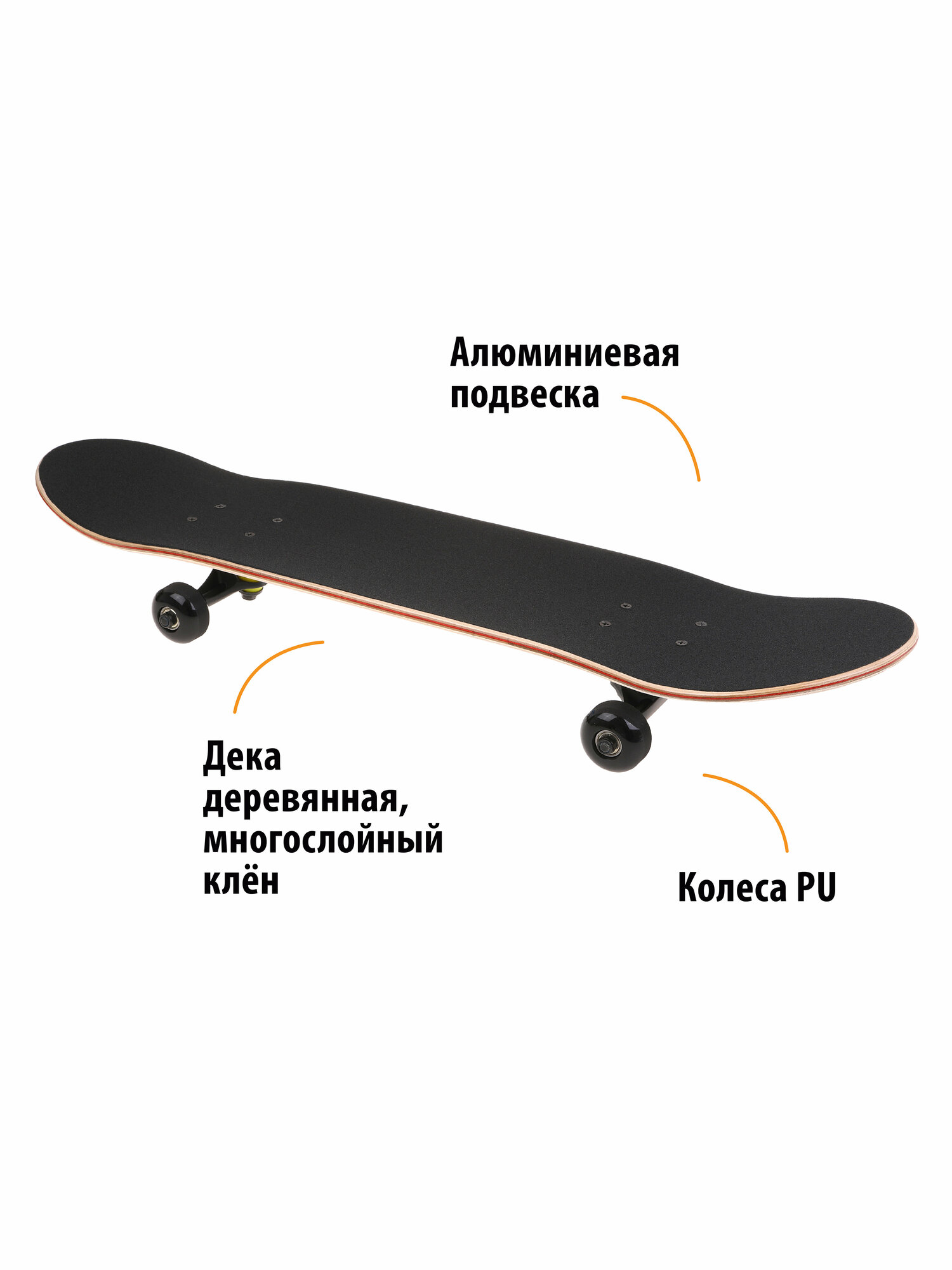 Скейтборд 80 х 20 см дека клён с наждачным покрытием Х-Match 649112