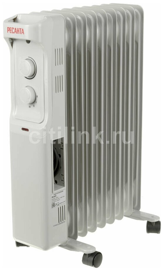 Купить Масляный радиатор Ресанта ОМ-9А, с терморегулятором, 2000Вт, 9 секций, 3 режима, белый [67/3/16]