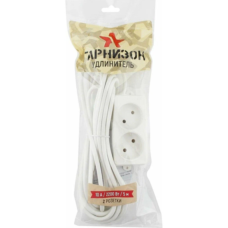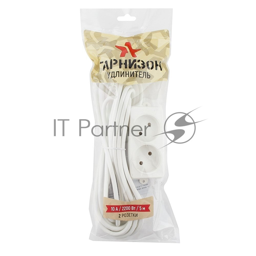 Удлинитель Гарнизон EL-NL2-W-5, 2 розетки, допустимый ток 10 А, длина 5 м