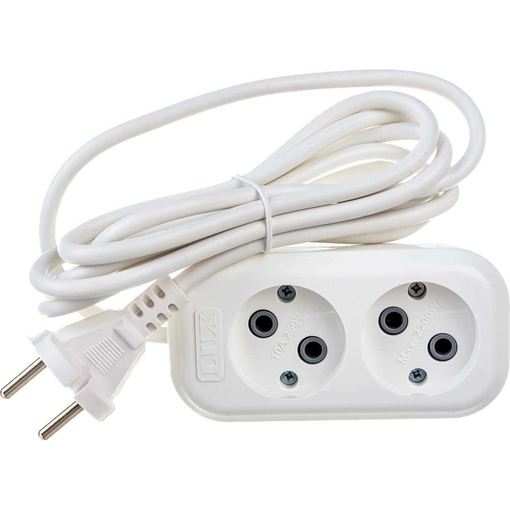 Удлинитель LUX У2-О, 2 розетки, б/з, 10А / 2200 Вт белый 2 м 0.75 м² 2